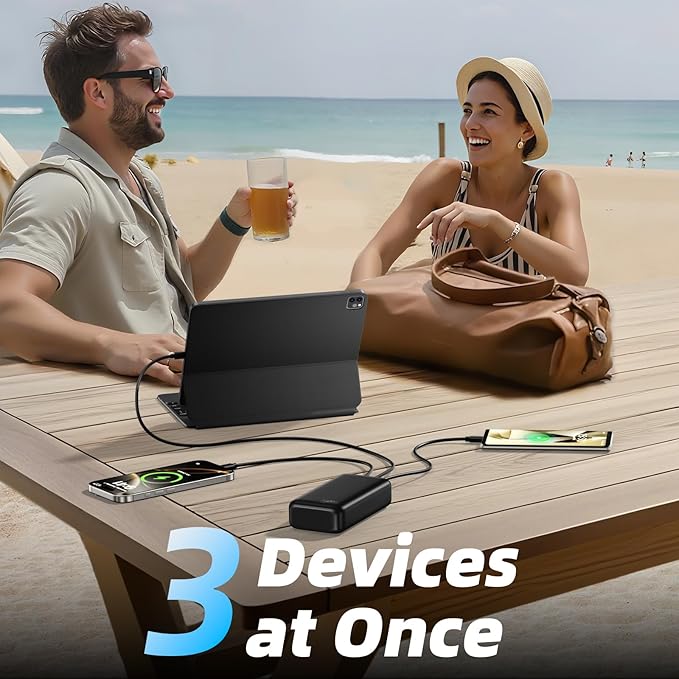 - 3 Devices Simultaneous Charge: PIFFA portable charger enables you to charge three devices concurrently. It features multiple ports, including USB - C, with 3 Outputs and 2 Inputs supporting PQ3.0 and QC4.0. This setup ensures efficient charging for a variety of your devices.