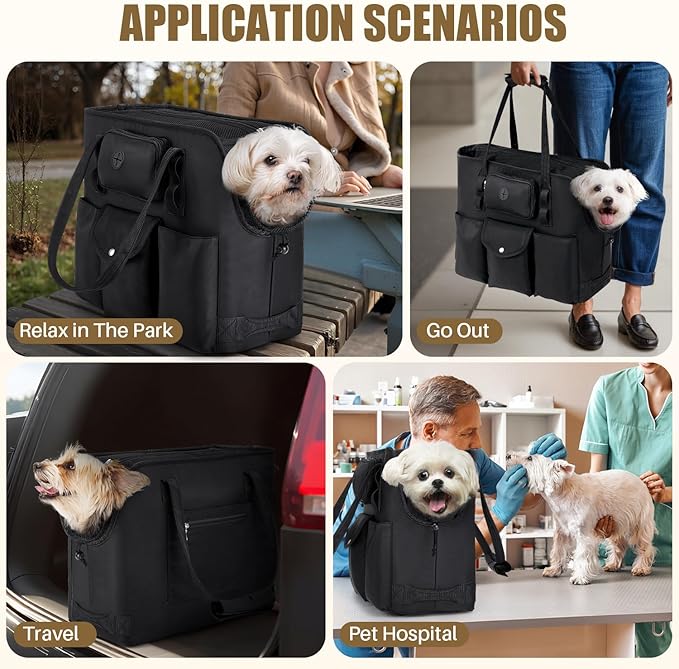 - Multi-Scenario Applicable --- With its minimalist design, this spacious dog carrying purse balances fashion with practicality, adapting to all your adventures. It stands up to daily walks, leisurely park strolls, quick vet visit, and travel. During long distance travels, the back luggage strap allows you carry your pet effortlessly while keeping both hands free.