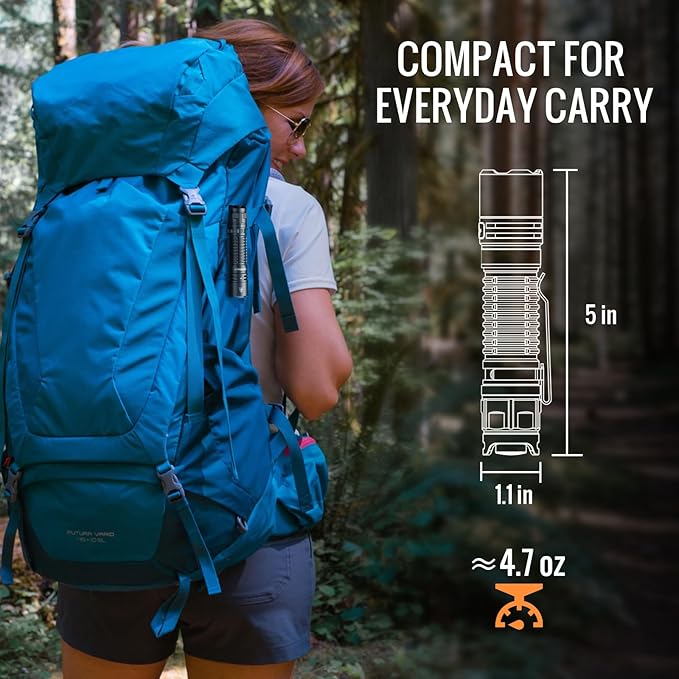 - Compact & Solid: 1.1 in ( head diameter) *5 in (length), with its pocket size, aircraft-grade aluminum alloy body and IPX8 waterproof rating, ideal for outdoor use.
