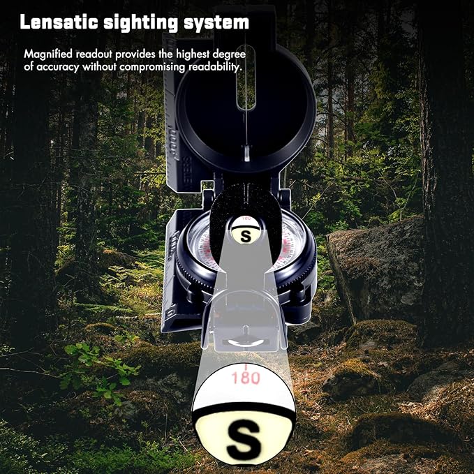 - 【Perfect for Outdoor Adventures】- Designed to excel in outdoor settings, this compass is perfect for various outdoor activities such as camping, hiking, hunting, scouting, and more. Its accurate bearings and sighting capabilities make it a valuable tool for navigation and orientation, ensuring you stay on track during your adventures. Whether you're exploring unfamiliar terrains or relying on accurate direction, this multifunctional compass is an indispensable companion.