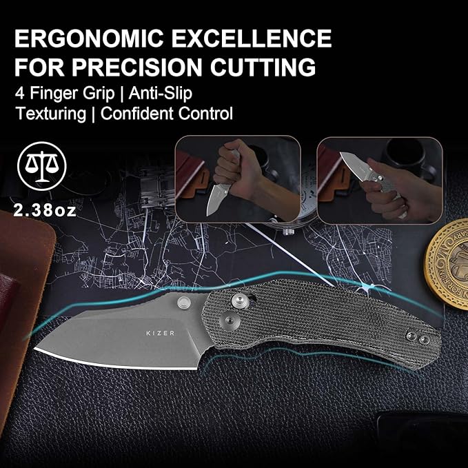 - Secure Locking with Thumb Stub & Clutch Lock: Kizer Mini Bulldog small edc knife features a thumb stud for quick, intuitive one-handed blade deployment. Combined with a robust clutch lock mechanism, it ensures the blade stays securely in place during use, providing safety and confidence in every cut. Perfect for everyday carry and precise tasks requiring reliable locking performance.