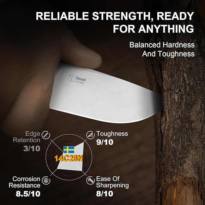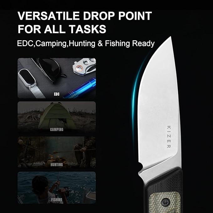 - 14C28N Steel Blade for Everyday Carry: Kizer Smolt fixed blade knife is crafted with premium 14C28N stainless steel, a high-performance steel celebrated for its superb corrosion resistance and impressive edge stability. Backed by German engineering, this steel offers a perfect balance of edge retention and easy sharpening, delivering everyday reliability and exceptional performance at a great value.