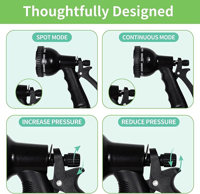 - [Easy Spray Control] - The 360° rotating shower head lets you switch quickly between spray, jet, rinse, and more. Use it as a hiking shower sprayer after a long trek or choose between trigger-press mode and lock mode for hands-free convenience—making this the perfect portable sprayer for outdoor adventures.