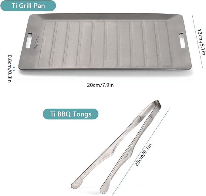 - Lightweight Compact: The Ti grill pan and tongs are lightweight, making them good for backpacking and camping trips where every gram counts. Crafted from premium Ti, this set is corrasion resists, scratches, and wear, ensuring long-lasting performance.