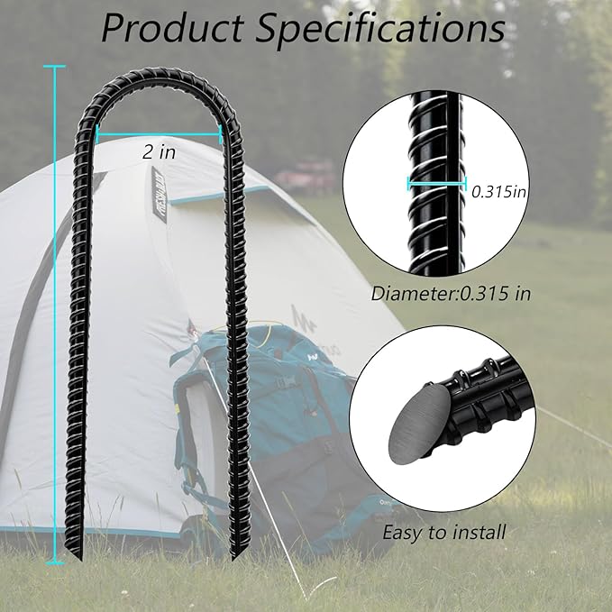 - Wide range of applications:The ground stakes heavy duty for trampoline,Camping Tents,Fences,Soccer Goals,Swing, tarps,Landscape,Garden Decoration,garden cloths,hoses,eed barriers, etc.