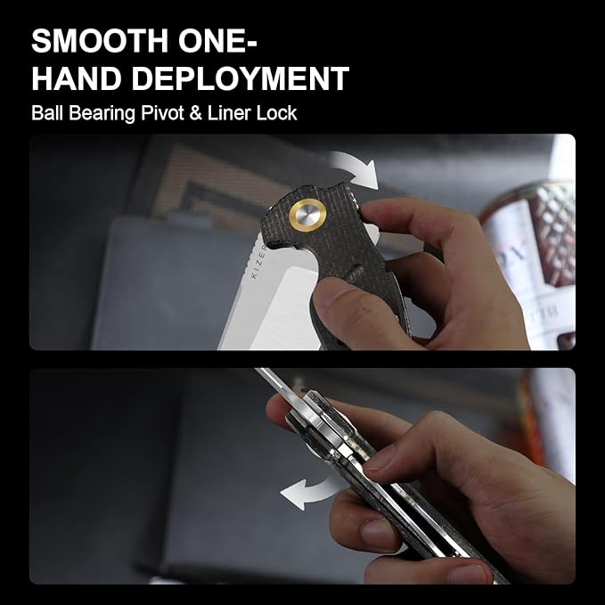 - Smooth One-Hand Deployment: Equipped with a precision ball bearing pivot, this pocket knife with clip delivers effortless and rapid flipper opening for quick, reliable access; The robust liner lock securely holds the blade in place during use, ensuring safe and confident handling in any situation