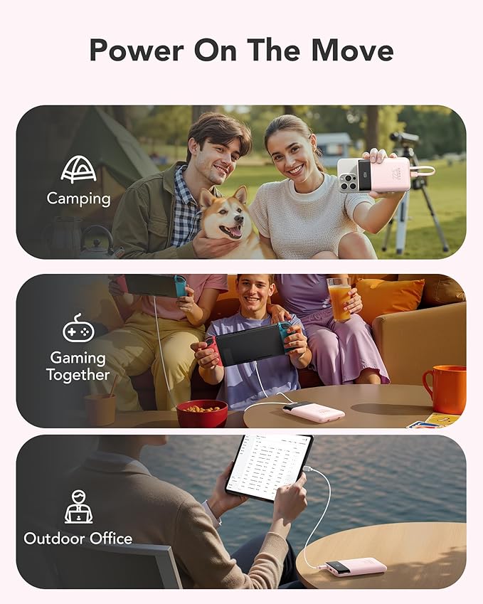 - 【20% lighter, Still 10000mAh】 Weighing only 0.4 lb, it's significantly lighter than comparable models while delivering a full 10000mAh capacity. Provides up to 1.7 charges for iPhone 16 and over 1.5 charges for a Galaxy S25—the ideal balance of portable size and reliable power.