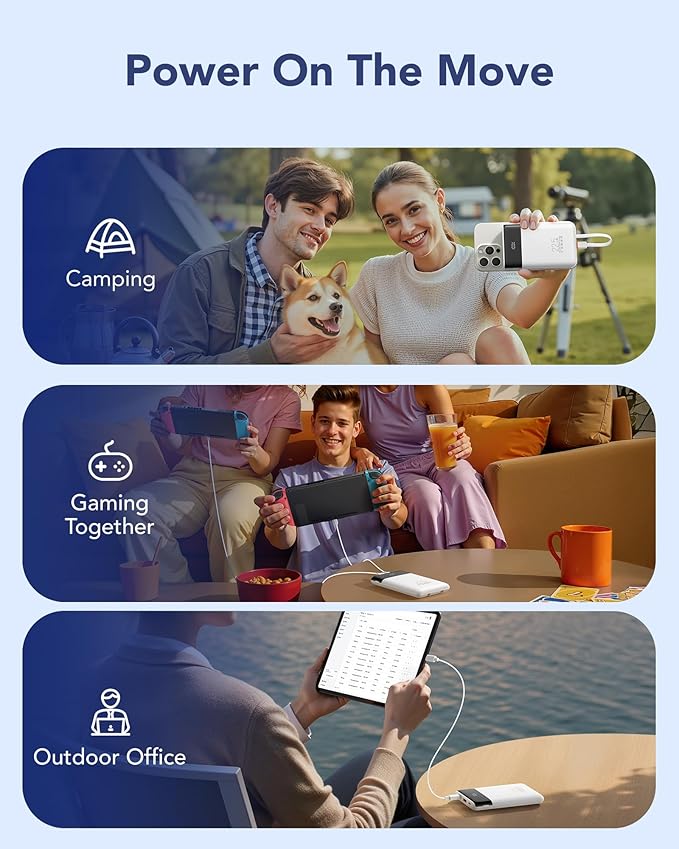 - 【22.5W PD Fast Charging】 The power bank equipped with PD fast charging, charge your devices at up to 22.5W via USB C, much faster than standard chargers, save you precious time when you need it most.