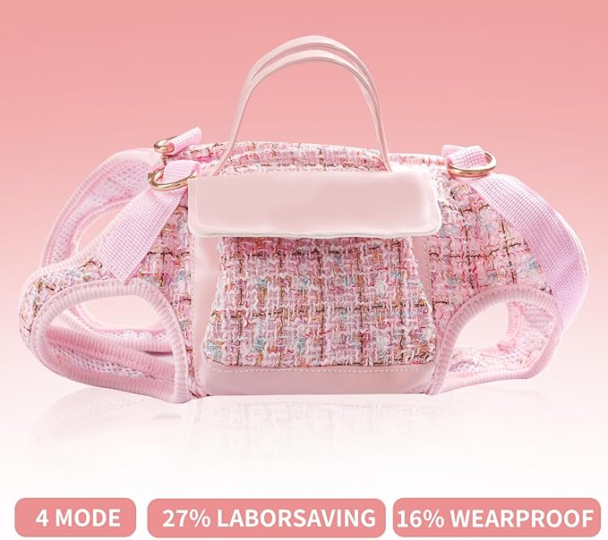 4 in 1 Convertible Dog Lift Harness Backpack, Portable Pet Carrier for Dogs&Cats, Horizontal Design Dog Carrier with Adjustable Back Straps, Dog Harness and Leash Set - Pink Medium