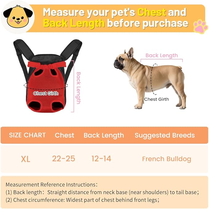 - 【Sizing Guide: Match to Pet’s Body Type】: Multiple size options fit pets of different body types. Before purchasing, measure your pet’s weight, body length, chest girth and leg circumference (weight is not the sole sizing basis). For detailed measuring methods, please refer to our video—you’re welcome to watch it for step-by-step guidance. Refer to the detailed size chart to choose, and whether for large dogs or small cats, you’ll find a comfortably fitting backpack.