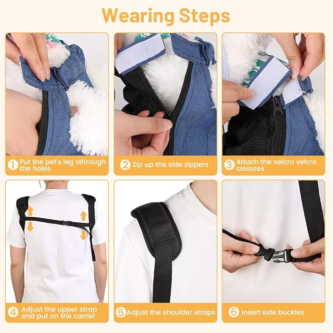 - 【Anti-anxiety Design Concept】: Both the dog sling carrier and cat sling carrier adopt an open-style design that allows the pet's legs and tail to hang down naturally, increasing interaction with the outside world and effectively alleviating the pet's nervousness and anxiety in unfamiliar environments.