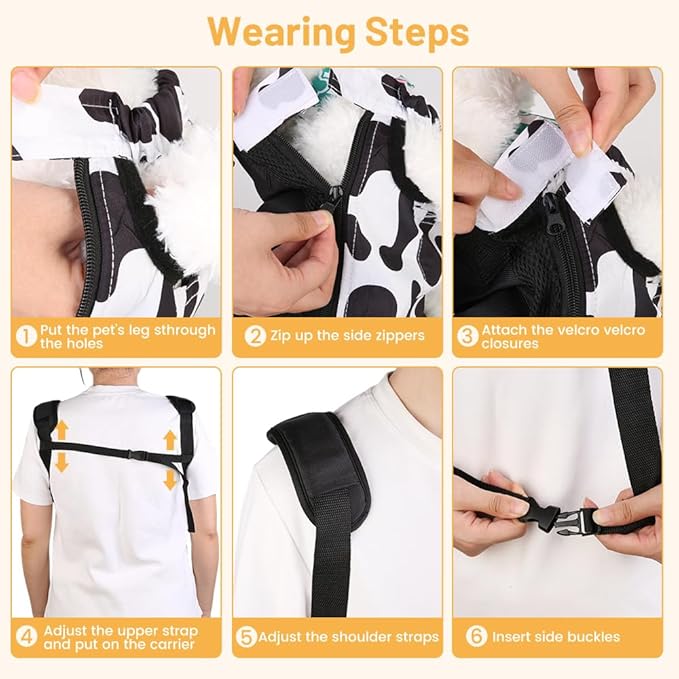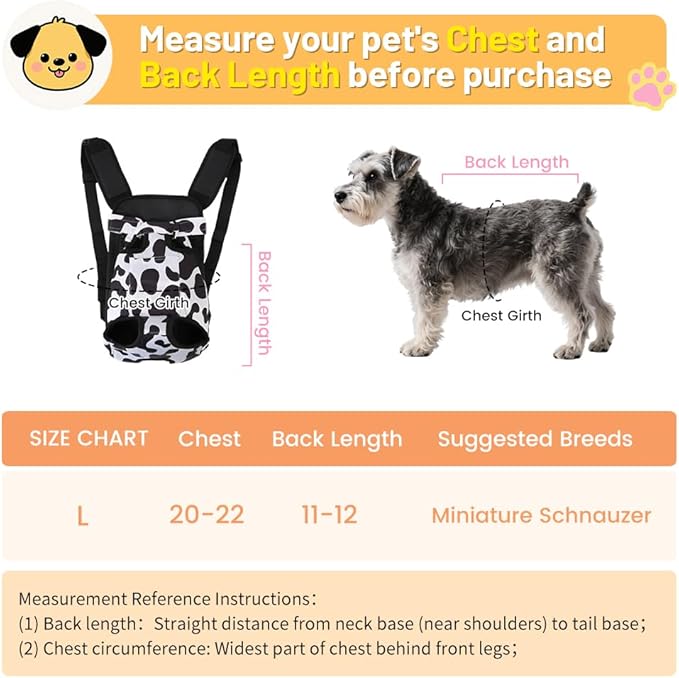 Inspack Dog Backpack Carrier/Cat Carrier, Adjustable Pet Front Carriers Travel Bag for Puppy Medium Dogs, Legs Out, Soft Ventilated Dog Chest Carry Backpacks for Hiking/Camping, 7-11 lbs, Cow Print