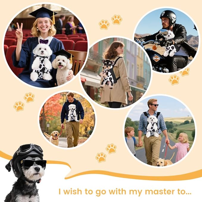 - 【Full Upgrade】:The small dog carrier backpack has two key upgrades: Wide padded straps spread weight evenly, no shoulder tightness even after long carries. The thickened sandwich-style bottom cushion eases walking jolts, keeping your dog stable. Great for daily walks or weekend trips – you carry comfortably, your pet stays cozy.