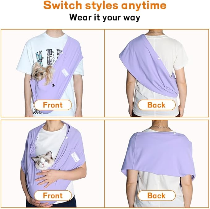 Dog Sling Carrier – Ice Silk Dog Slings for Small Dogs up to 10 lbs, Breathable Dog Carrier Sling with Adjustable Safety Strap & Buckle, Portable Cat Sling Carrier (Purple)