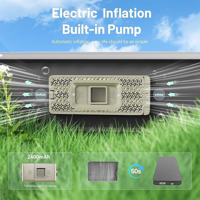- Worry-Free And High-Quality Service - If you encounter any issues during use, please feel free to contact us at any time. We will respond promptly within 24 hours and resolve your problems.Warm Reminder - For the first use, please fully charge the electric pump before using it and the first inflation may take longer as the foam needs time to expand under vacuum.Besides, this camping mattress pad is easy to clean, just wipe it clean with a damp cloth.