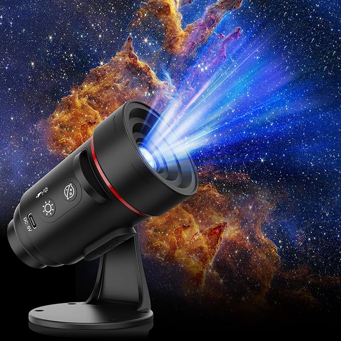 - 【Various Cosmic Ambience Effects】Choose from different projections Film Disc, including stars, nebulae, and the earth, bringing a variety of stunning cosmic scenes. Enjoy the rich effects of a planetarium projector, making every night feel full of mystery and romance. Perfect for family use, parties, or relaxing before bed. Switch to select a space projector or ocean projector galaxy light to fill your space with the wonders of the universe