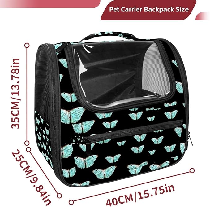 Butterfly on Black Background Pet Travel Carrier | Ventilated Comfortable Design with Safety Features | Ideal for Small to Medium Sized Pets Cats, Dogs etc