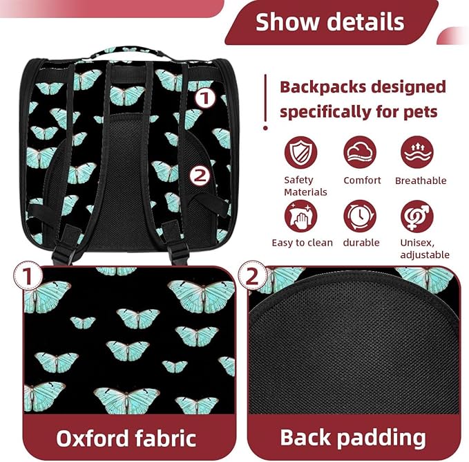 - Well made: Cat Backpack Carrier is made from 900D oxford fabric, pp webbing, velvet, nylon, which is very sturdy, environmentally friendly and breathable. Not easily scratched by pet’s claws, pet backpack carrier is SAFETY & ANTI-SCRATCH. The back padding will give you a comfortable and breathable experience.