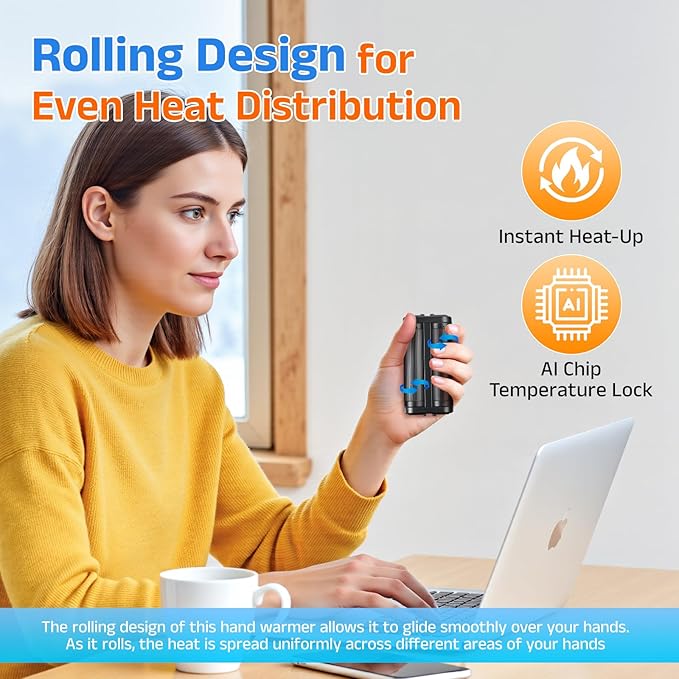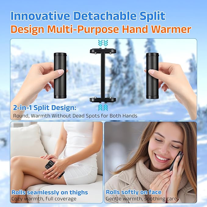 - 【2-in-1 Rolling Design: Warmth & Palm Massage】This innovative hand warmer can be used as a single unit for full-palm warmth or split into two detachable cylinders. Gently roll them to enjoy a soothing acupressure massage that relieves tension and improves circulation, offering therapeutic comfort beyond simple heat