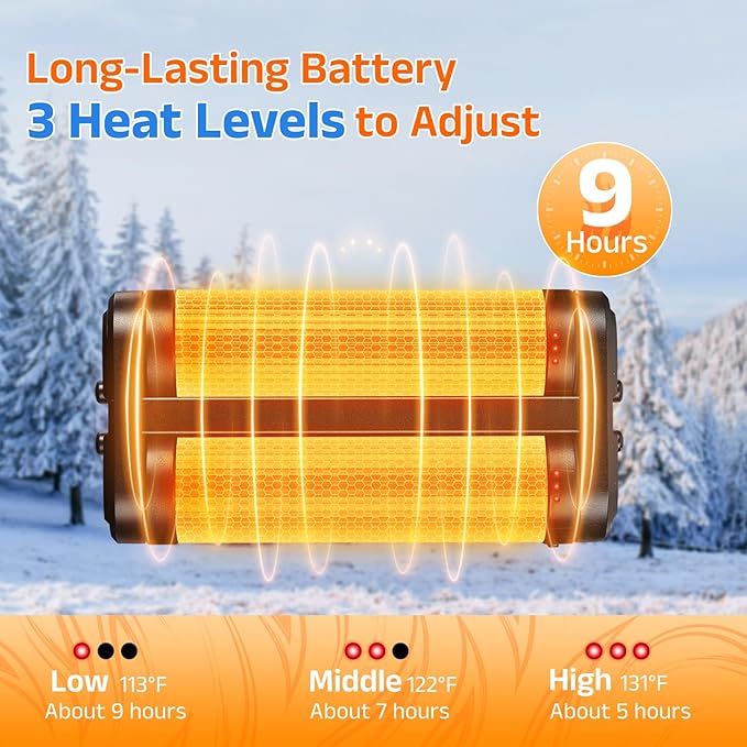 - 【AI Smart Temperature Lock & 9-Hour Runtime】Our premium electric hand warmers rechargeable features an intelligent AI chip that precisely locks in your chosen temperature for consistent, efficient warmth—while optimizing power usage to extend runtime. This rechargeable hand warmer delivers up to 9 hours of continuous heat on a single charge, making it the perfect hand warmer rechargeable for all-day travel and outdoor adventures