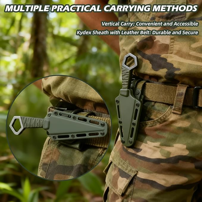 - Multi-Purpose Sheath: The Kydex sheath is designed with versatility in mind. It allows for horizontal carry, which is ideal for quick access in tactical scenarios. The sheath can be easily attached to your belt or gear, ensuring the knife is always within reach when you need it for self-defense, outdoor activities, or any other task