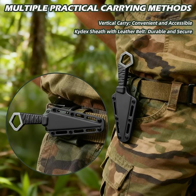 - Multi-Purpose Sheath: The Kydex sheath is designed with versatility in mind. It allows for horizontal carry, which is ideal for quick access in tactical scenarios. The sheath can be easily attached to your belt or gear, ensuring the knife is always within reach when you need it for self-defense, outdoor activities, or any other task