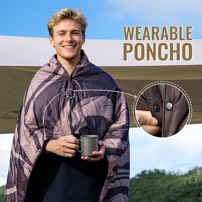 ONETIGRIS Camping Blanket,Wearable Outdoor Quilt with Recycled Thermal Insulation, Convertible to Sleeping Bag, Lightweight & Portable Travel Blanket for Camping &Hiking