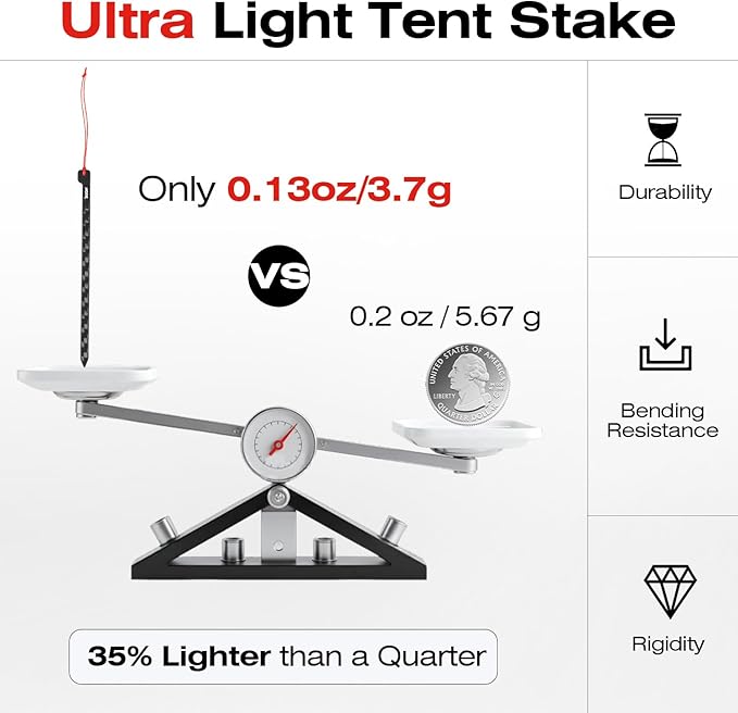 - Minimize Backpack Weight: Designed for ultralight backpackers and hikers, weighing just 0.13 oz (3.7 g) each with a length of 4.72 in (12 cm), our tent stakes significantly lighten your pack load for thru-hikes and minimalist camping