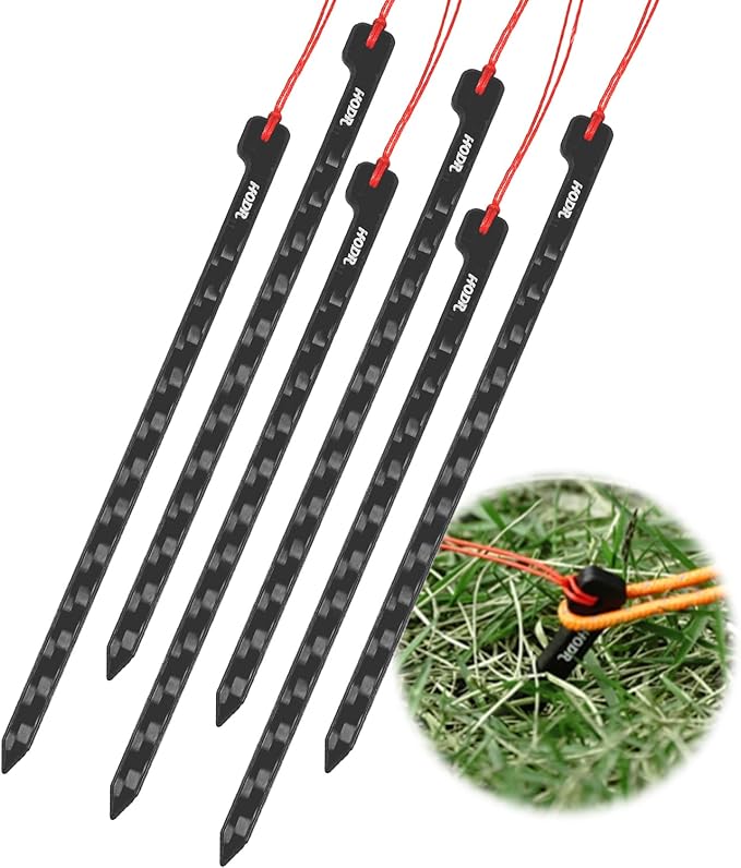 - Rust-Free & Easy Maintenance: All-carbon fiber build tent stakes without metal parts eliminate rust and reduce corrosion, ensuring stable performance in most soil conditions; simply rinse with water after use for repeated reliability