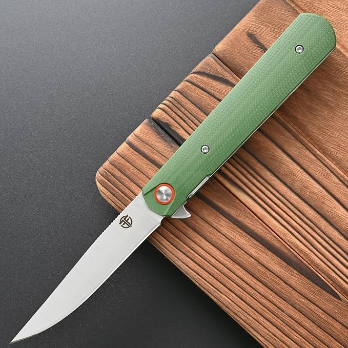 FF6 Folding Knife,D2 Steel Blade G10 Handle EDC Tool Knife for Camping,Hiking,Hunting,Fishing(Green)