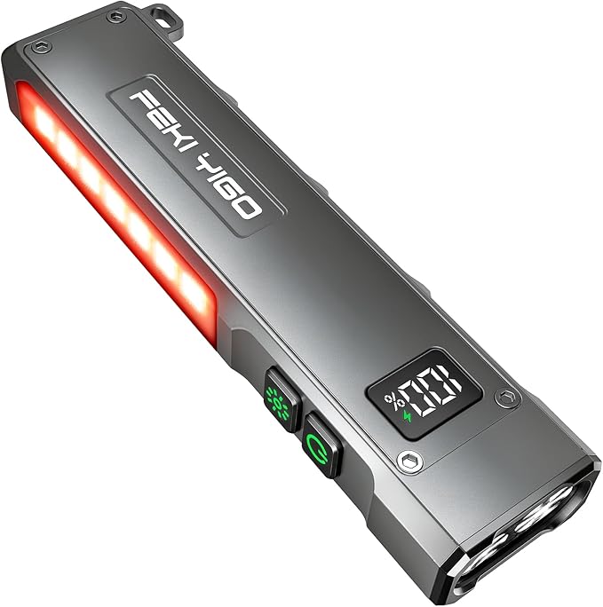 Feki Yigo G02 EDC Rechargeable Flat Flashlight 1800 Lumens White LED/UV/RGB Signaling Flashlights, Waterproof Magnetic Clip on Flashlight for Outdoor Home Emergencies, Camping Essentials (Grey)