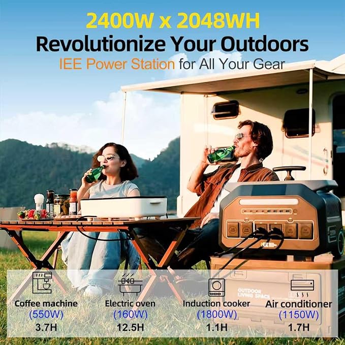 IEE P2400 Portable Solar Generator,2400W 4xAC Outlet(Peak 5000W),1800W 1.2H Fast Charge,2048WH Lifepo4 Battery,5-8MS EPS Switch APP Control Below 30DB Quiet Power Station for Home Backup,RV.Outdoor.