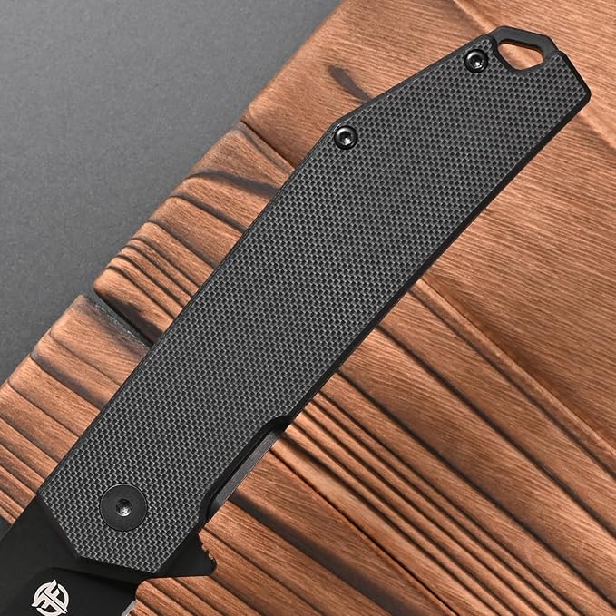 FF18 Folding Pocket Knife,AUS-8 Steel Blade G10 Handle EDC Tool Knife for Outdoor Survival,Camping,Hiking,Hunting (Black)
