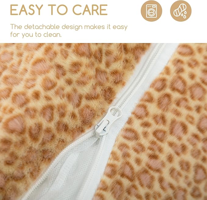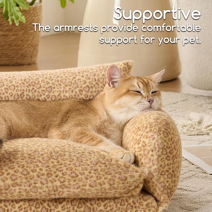 Hollypet Cat Bed Fluffy Plush Mutifuctional Double-Layer Soft Pet Couch Orthopedic Sofa Nest Beds for Small Cats and Dogs, Yellow Leopard (21x15x8 inch)