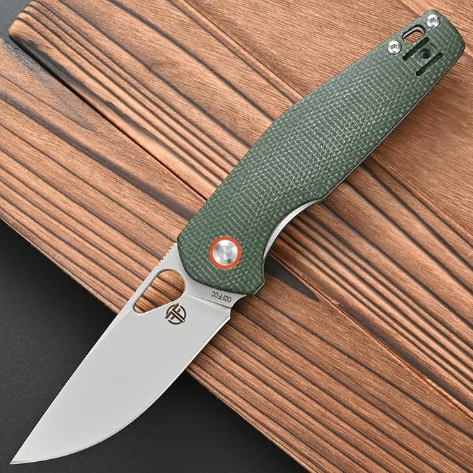FF5 Folding Pocket Knife, DC53 Steel Blade Micarita Handle with Pocket Clip for Outdoor Camping Hunting Fishing Working (Green)