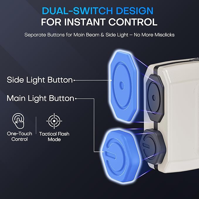 - 【Dual Switch + Mode Memory – Fast, Reliable, Glove-Friendly】 This tactical flashlight features two separate buttons for the main and side lights—no confusion, even in the dark or with gloves on. Built-in mode memory recalls your last setting, saving time during repeated use. A dependable EDC flashlight that’s smart, quick, and always ready when it matters most.