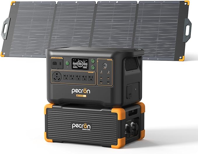 Pecron Portable Power Station F3000LFP with 3072Wh Extra Battery, 200W Solar Panel*1, 3072Wh Solar Camping Generator, 3600W Solar Generator for RV, Home Use, CPAP