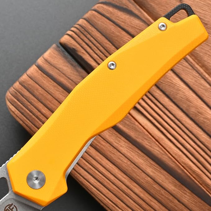 FF21 Folding Pocket Knife,VG10 Steel Blade G10 Handle Full Tang Knife for Outdoor Activities Camping Hunting Fishing(Yellow)
