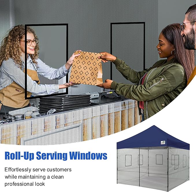 - BREATHABLE MESH WALL:Fullsided netting for all-round protection and provide excellent ventilation on sultry summer day, keep cool. The best choice for small business,3 panel with W/ windows and the back entry door.