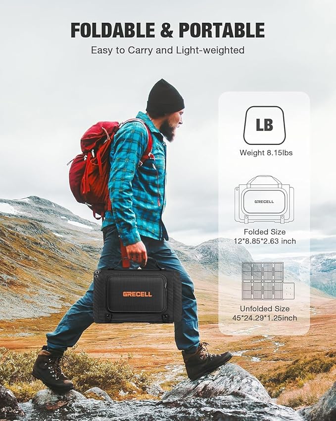 - 【Perfect Choice for Outdoors】Compact solar panel charger can be 8 folded down to the size of a small handbag with a handle and built-in zipper accessory pouch, can be easily squeezed into any backpack, offering portability and simplicity. Equipped with metal hanging holes, you can easily hang it on your tent, RV, backpack or a tree to get solar energy while RV camping, on off-grid trips, hiking, climbing, etc.