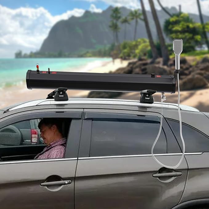 Portable 5.28 Gallon Pressurized Water Tank, High Pressure Road Shower Tank, Roof Mounted Camping Truck Shower with Shower Head for SUV RV Off-Road Vehicle
