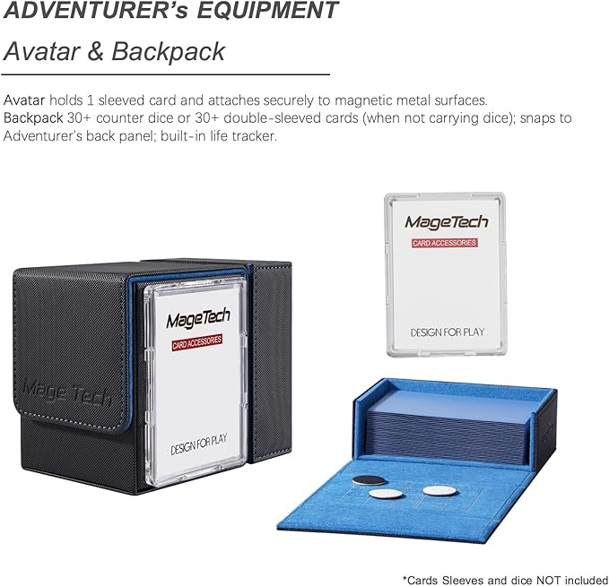 - [๐ฃ๐ฎ๐ฟ๐ฎ๐ด๐ผ๐ป: ๐๐๐ฎ๐๐ฎ๐ฟ + ๐๐ฎ๐ฐ๐ธ๐ฝ๐ฎ๐ฐ๐ธ ๐ณ๐ผ๐ฟ ๐๐ผ๐บ๐บ๐ฎ๐ป๐ฑ๐ฒ๐ฟ] Magnetic Avatar holder snaps to either side to showcase your commander; the larger Backpack dice box (with life tracker) snaps to Adventurerโs back panel for external carry (not for inside storage).