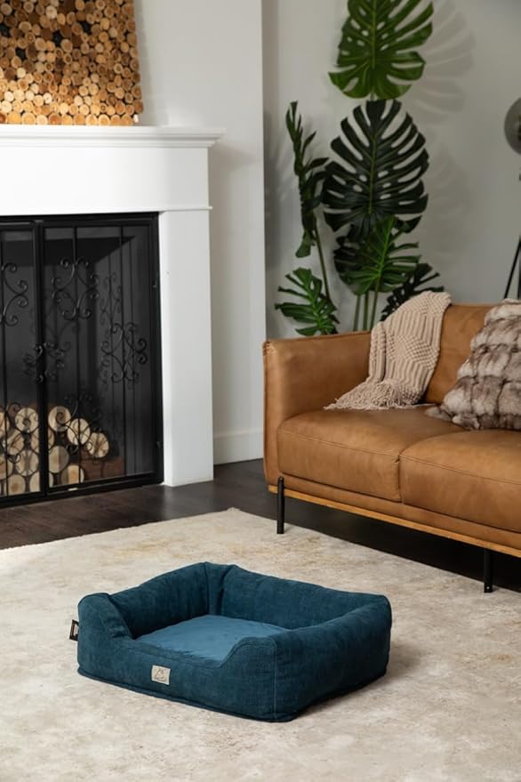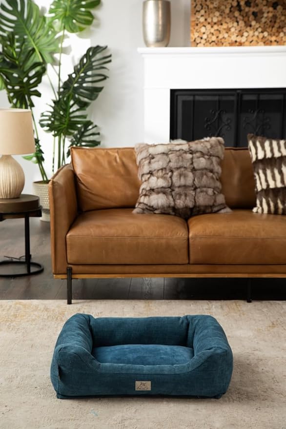 Furry's Paradise Cuddler Waterproof Bolster Pet Bed with Recycled Fibers and Non-Slip Bottom. (Deeper Waters, Small)