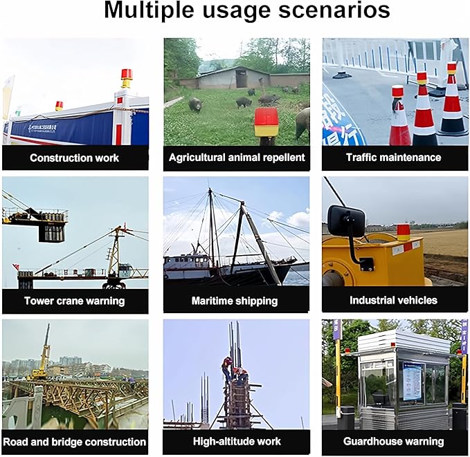 - High-Visibility Red LED Strobe – Bright flashing beacon ensures maximum visibility for construction zones, road safety, tower cranes, warehouses, and hazard warnings.