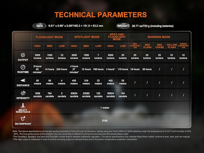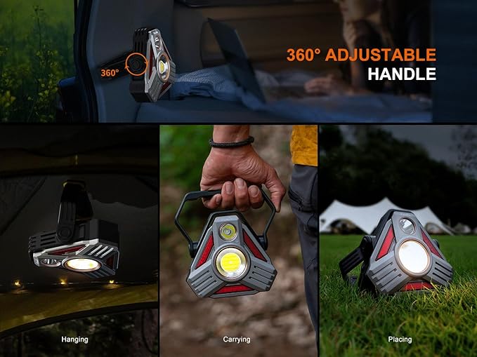 - Super Bright Lantern – 5,500 Lumens combines spotlight and floodlight for maximum illumination up to 492 yards. Perfect for camping, hiking, car emergencies, outdoor work, or industrial use,