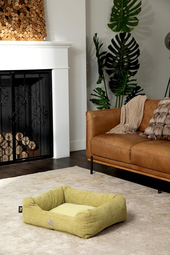Furry's Paradise Cuddler Waterproof Bolster Pet Bed with Recycled Fibers and Non-Slip Bottom. (Olive Green, Small)