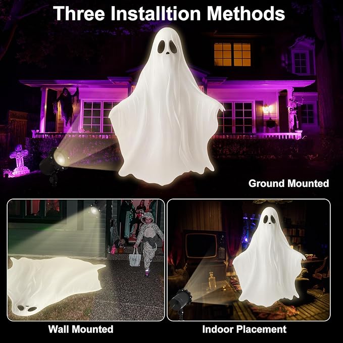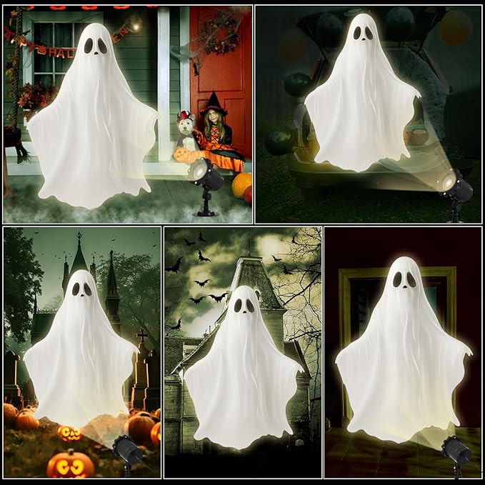 Treela Halloween Ghost Projector Lights Outdoor Indoor White Ghost Dynamic Lights Decoration Outside LED Landscape Lamp for Holiday Garden Supplies