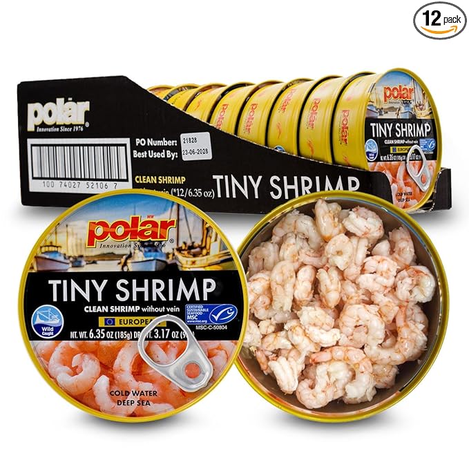 MW Polar Tiny Shrimp Without Vein 6.35 oz (Pack of 12), Wild Caught, Ready to Eat, Denmark Cold Water, Clean & Peeled