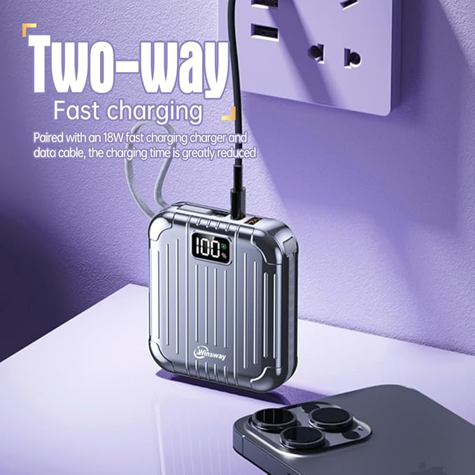 - FAST CHARGING: Features 22.5W fast charging capability with built-in dual cables for convenient charging of multiple devices simultaneously.The iPhone 16 can be charged up to 60% in half an hour, and the Samsung S24 can be charged up to 55% in half an hour.