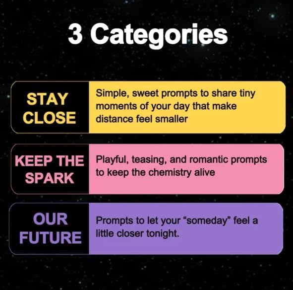 - Made for LDRs: Stay emotionally close across cities or countries with prompts designed specifically for long-distance couples—keep calls meaningful and the spark alive.